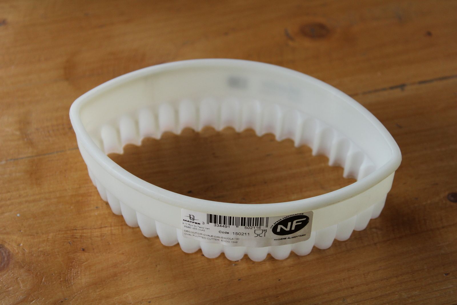 En voyant l'emporte-pièce ovale cannelé sans prix, je me suis dis qu'il devait être à peu près au même prix que le rond cannelé à chaussons aux pommes (que j'ai déjà d'ailleurs) soit dans les 8E.